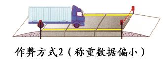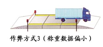 在稱重過程中,作弊車輛會存在不完全上磅或者多輛車同時上磅的情況,此系統可以輕松應對這些問題。在車輛未完全上磅(如圖二、圖三所示),前輪或者后輪壓在外面,測量數據會比實際稱重重量偏小,在多輛車同時上磅的情況(如圖一所示)稱重數據會比正常數據偏高。多種作弊方式的出現,為企業管理帶來了很大的困擾,若磅房只有一個過磅員,由于精力有限,過磅車輛多,過磅員受各種壓力和誘惑的影響,很難嚴格執行過磅計量的標準,若企業增派過磅員,又會給企業增加人力開支,并且作弊情況也無法從根本上控制,無人值守防作弊系統采用紅外定位方式,在磅前、后端都設有紅外對射器,紅外發射器不間斷發射紅外信號,如果車輛未正常上磅稱重,紅外線會被擋住,稱重軟件不予以過磅,LED屏幕上會提醒車輛未完全上磅信息。